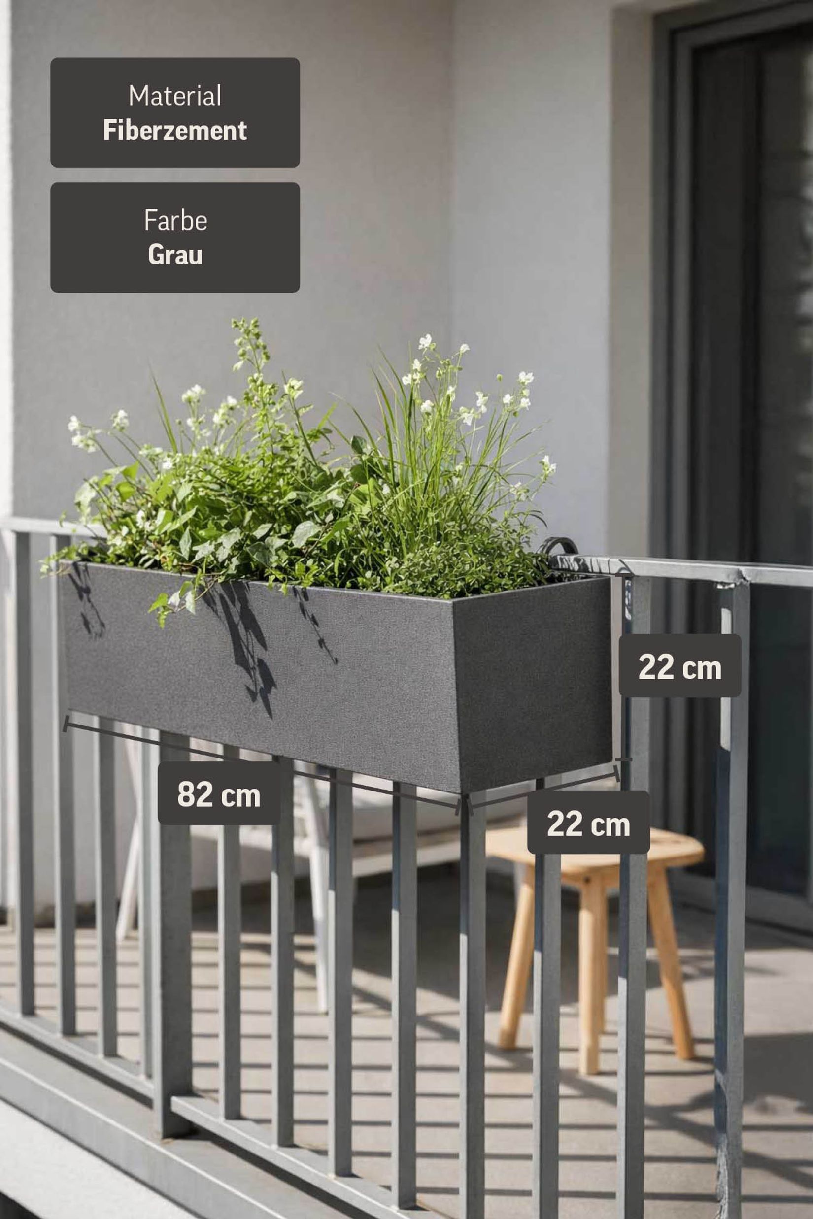 Balkonkasten Blumenkasten Fiberzement Milano BENNO - Grau