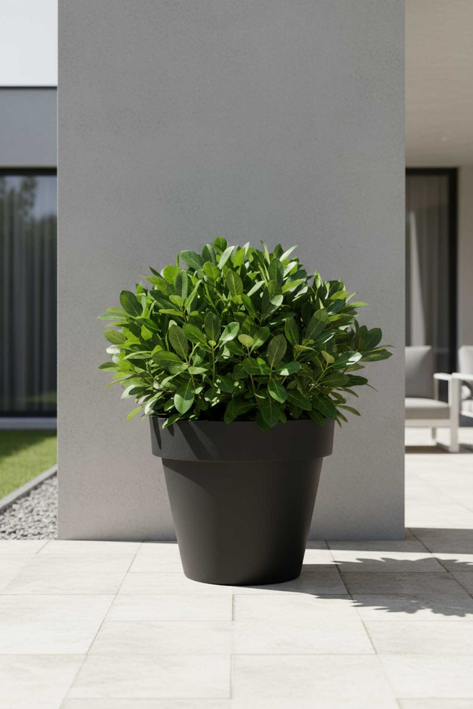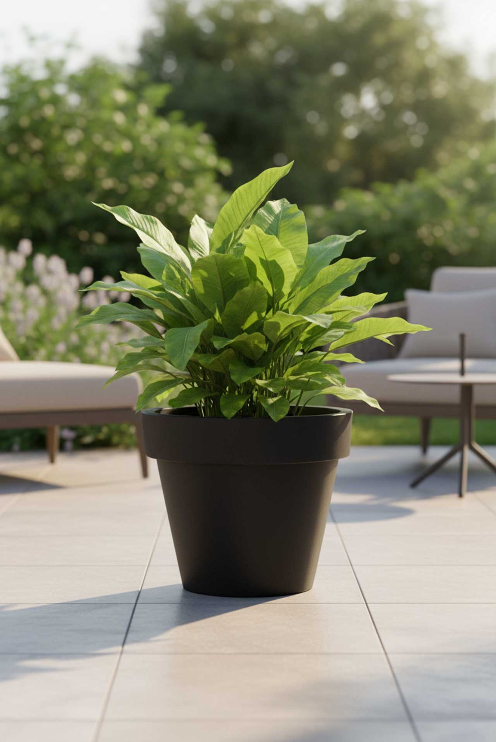 Apropos Garten - der dunkle LEVANTA mit dem attraktiven, breiten Rand darf gerne übers ganze Jahr im Außenbereich seine Verwendung finden. Ideal, wenn sich die elegante Linie nicht nur durchs Haus, sondern auch durch den Garten weiter ziehen soll. Das Kunststoffmaterial ist hierfür strapazierfähig gewählt und dank seiner matten Oberfläche nicht großartig pflegebedürftig. Ob vor dem Haus als stilvoller Hingucker, neben der Eingangstür als schmucker Blickfang oder auf Ihrem Terrassenbereich als edle Zugabe mit üppiger Bepflanzung - der anthrazitfarbige LEVANTA Blumenkübel ist variabel und immer enorm anpassungsfähig an das Umfeld.