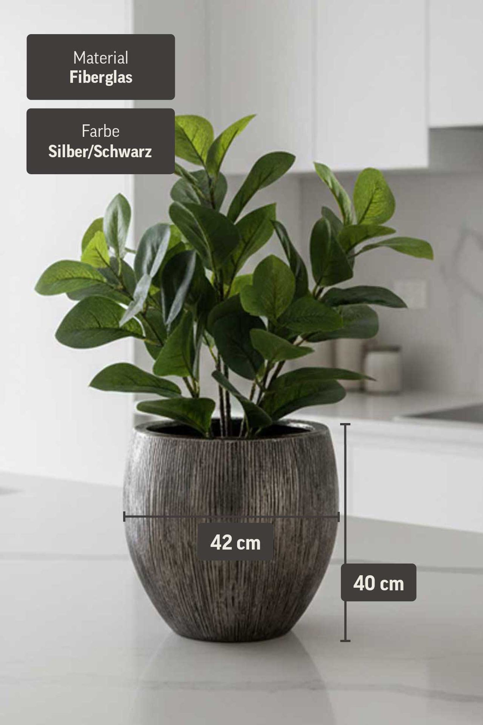 Blumentopf Pflanzkübel Fiberglas Silber Schwarz geriffelt CAIRO