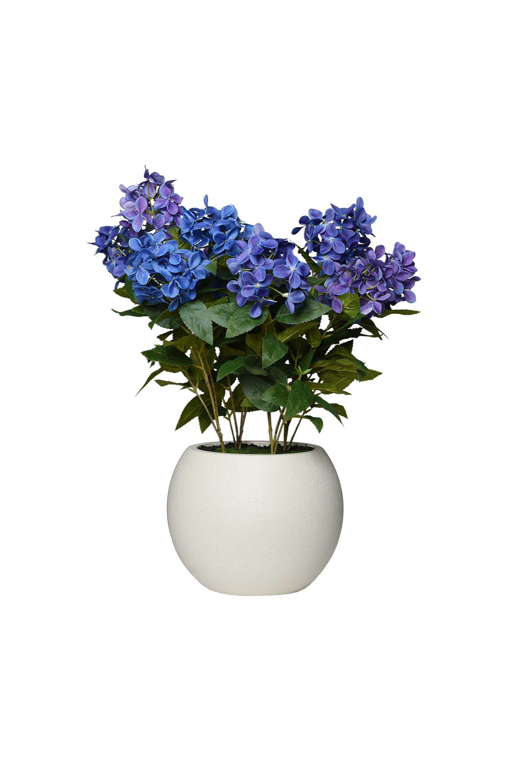 Die HYDRANGA Kunstpflanze bringt frische Eleganz und eine lebendige Farbnote in Ihre Wohnräume – ganz ohne Pflegeaufwand. Dieses liebevoll gestaltete Hortensien-Arrangement besticht durch seine intensive blaue Blütenfarbe, die sofort ins Auge fällt und jedem Raum eine freundliche, einladende Atmosphäre verleiht. Die einzelnen Blütenköpfe sind detailreich ausgearbeitet und überzeugen durch ihre naturgetreue Struktur, die dem Original täuschend ähnlich sieht. Ergänzt wird das Arrangement durch harmonisch abgestimmtes Blattwerk, das den realistischen Gesamteindruck unterstreicht. Der cremefarbene, runde Dekotopf bildet einen sanften Kontrast zu den blauen Blüten und sorgt für ein ausgewogenes, stilvolles Erscheinungsbild. Durch diese Farbkomposition wirkt HYDRANGA modern und zeitlos zugleich und lässt sich mühelos in unterschiedliche Wohnstile integrieren.