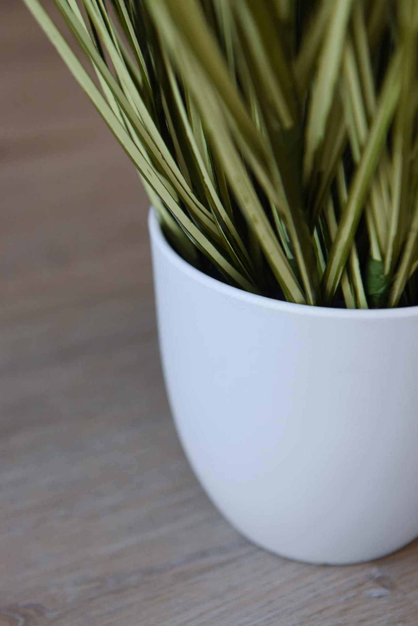 - der weiße Kunststoff Dekotopf ist sicher und dauerhaft mit dem Zebragras verbunden