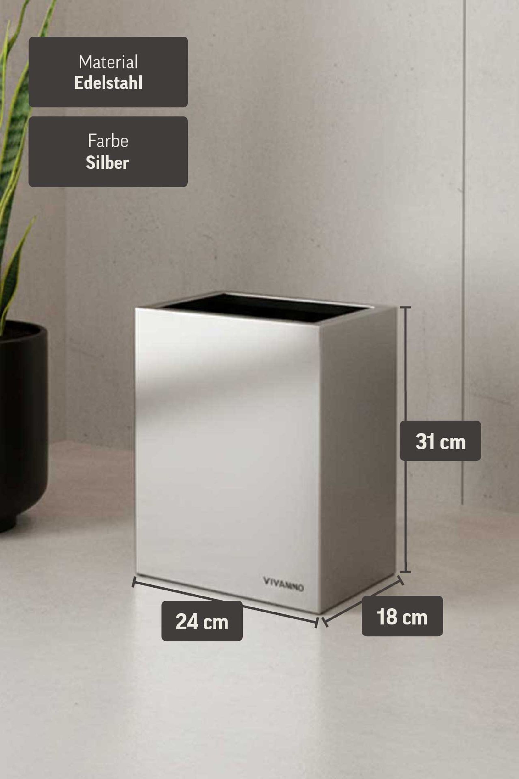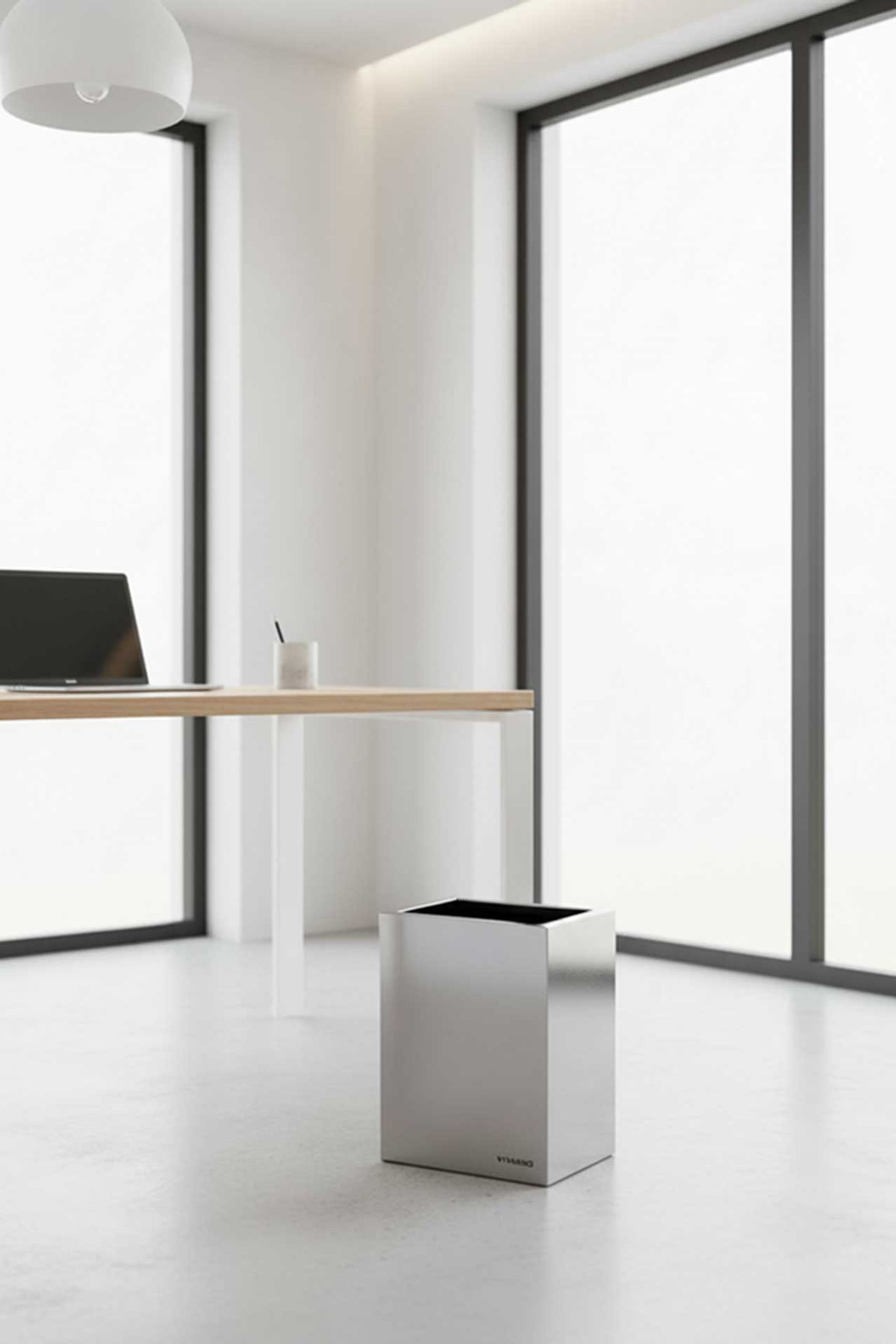 Cleaner Stil, polierter Edelstahl: Den kleinen Mülleimer ROCKO muss man nicht in einer Ecke verstecken. Mit seiner rechteckigen, klaren Optik in Silber wird er zum Bestandteil der Raumgestaltung und kann sowohl als Müllbehälter, als auch als Papierkorb fungieren. Im Gegensatz zu einem gängigen Netz-Papierkorb fällt dabei kein Blick auf den zerknüllten Inhalt, sondern lediglich auf den Müllbehälter und sein Design.