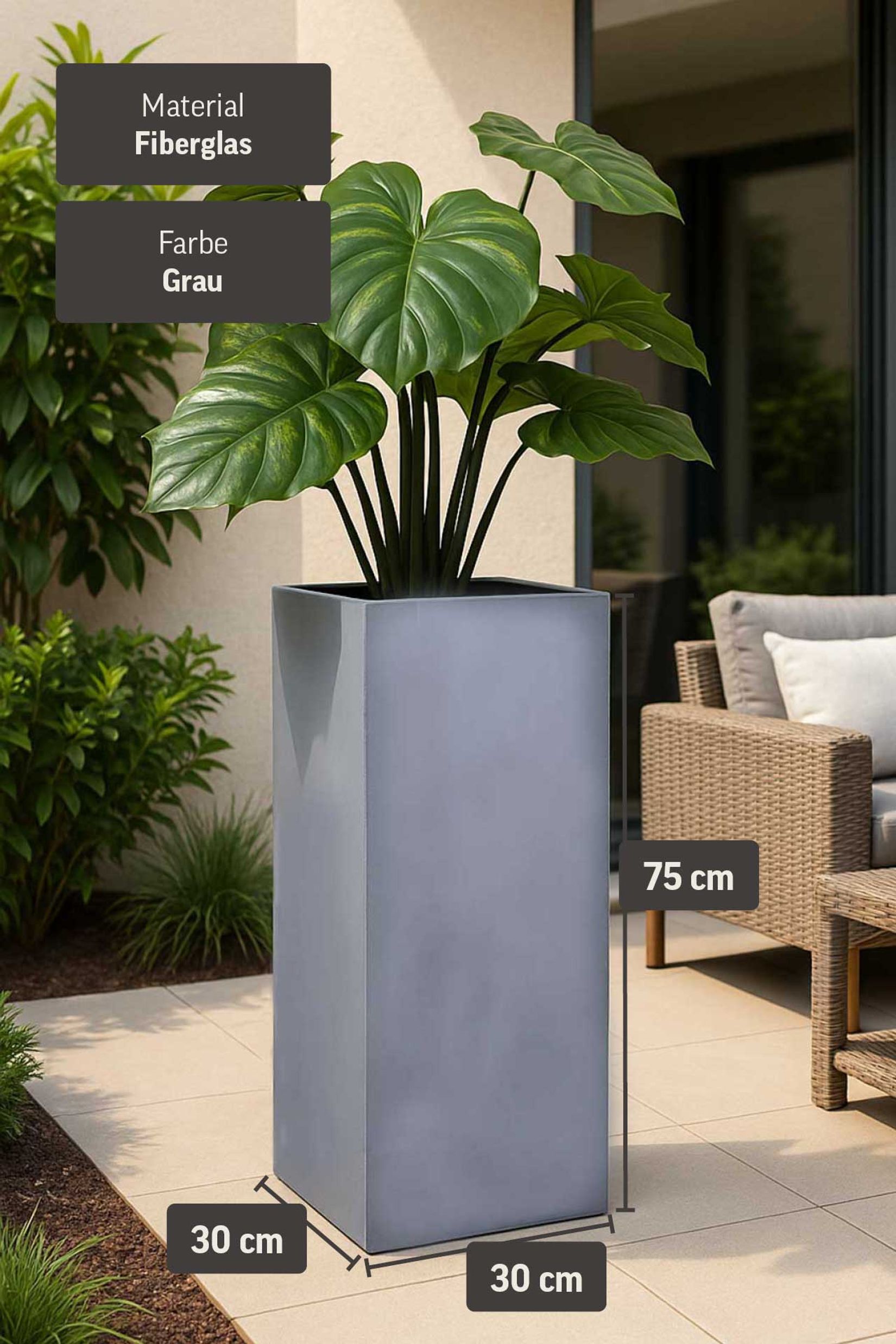Pflanzkübel Blumenkübel Fiberglas BLOCK Säule - Grau Beton-Design