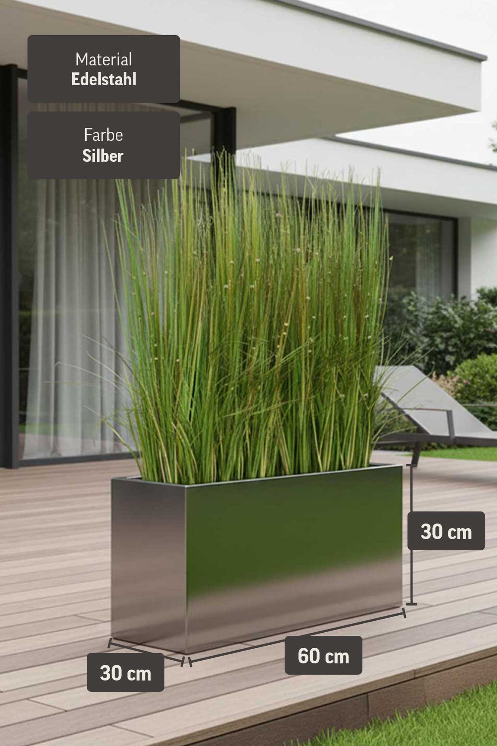 Pflanzkübel Pflanztrog aus Edelstahl MAXI - Gebürsteter Edelstahl