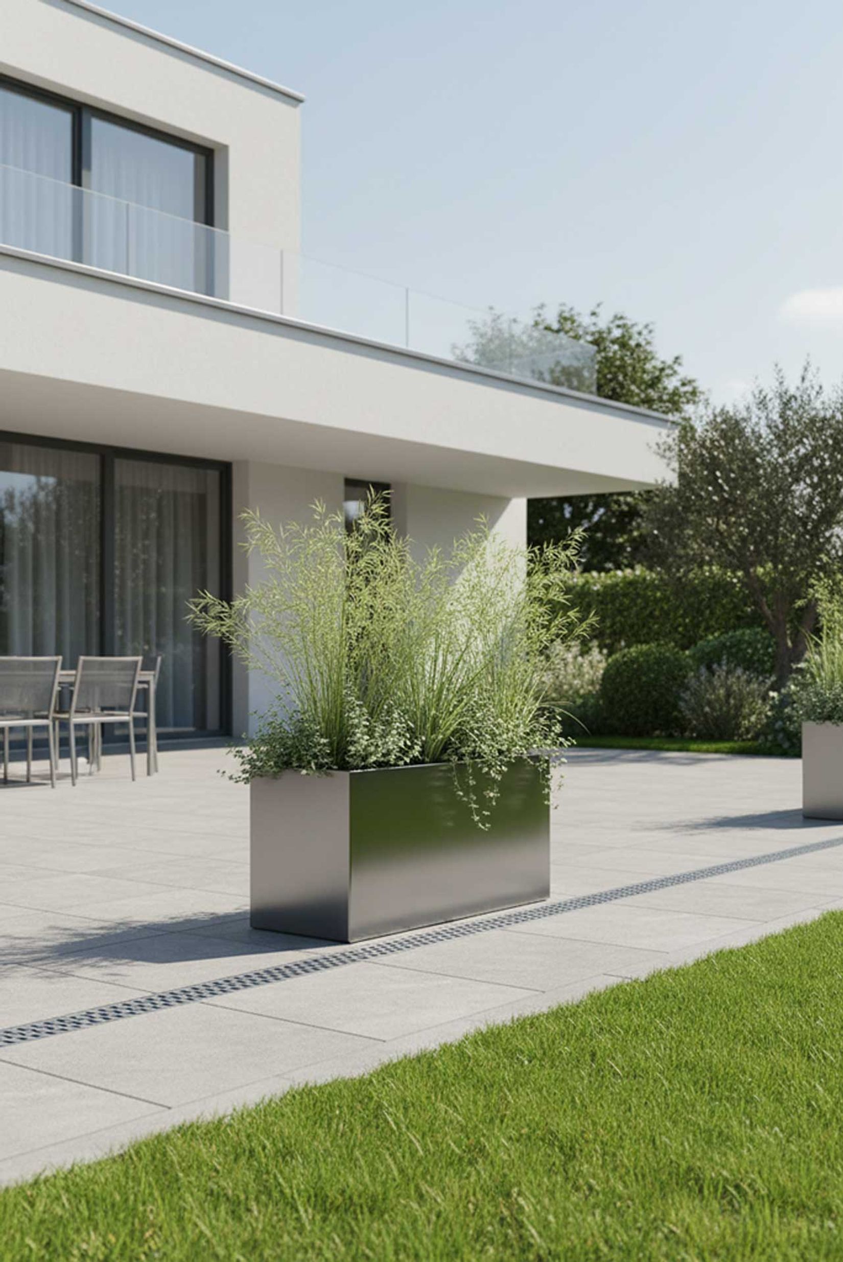 Für ein harmonisches Äußeres ist es für unser Auge oft sehr angenehm, Bereiche dezent voneinander abzugrenzen, beispielsweise die Terrasse vom Garten. Platzieren Sie den MAXI am Rand Ihrer Terrasse und Ihr Garten wird geschickt optisch aufgeteilt. Auch gewerblich profitieren Sie von diesem Pflanztrog. In einem Café gekonnt in Szene gesetzt, überzeugen Sie Ihre Gäste.
