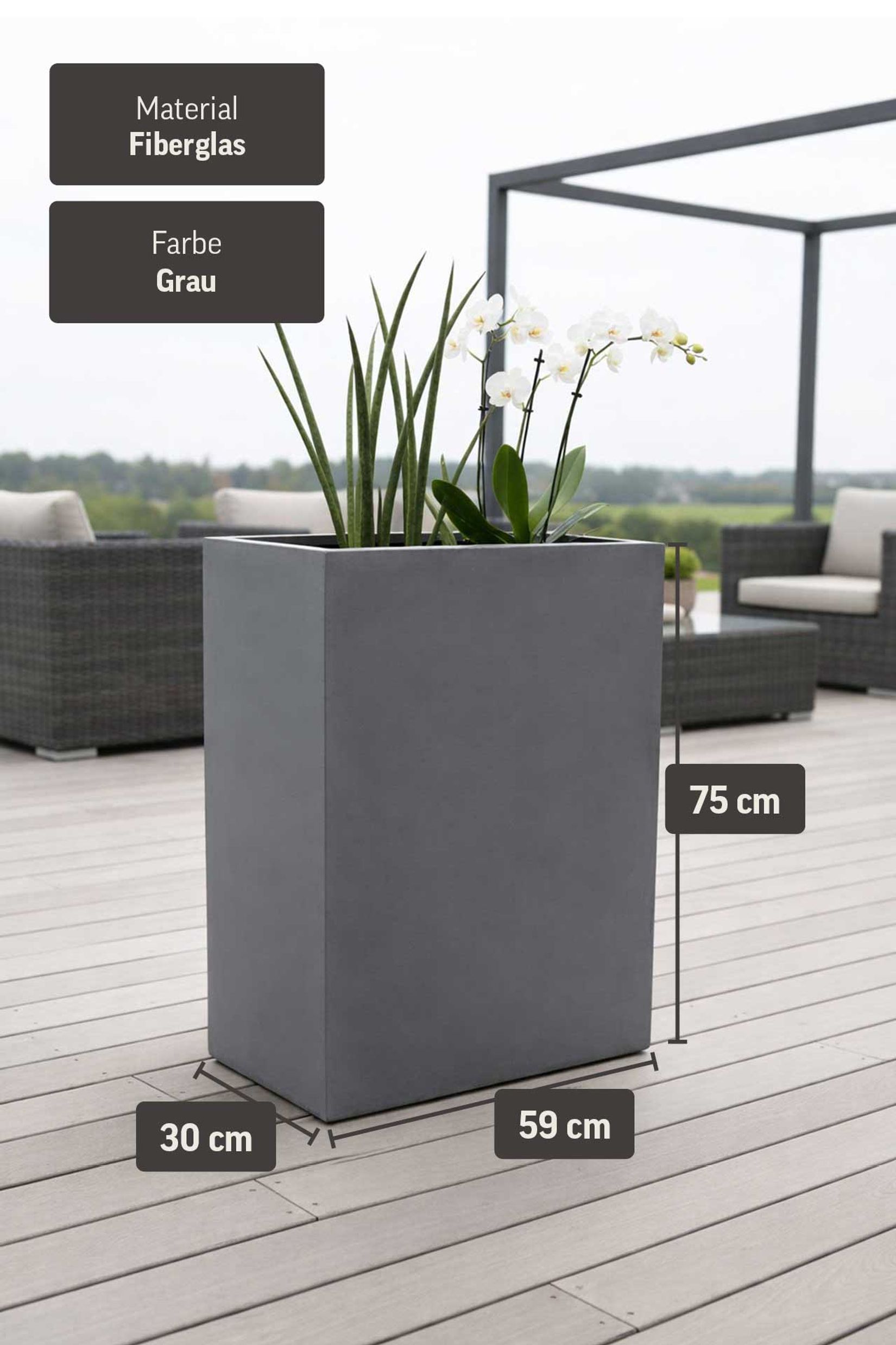 Pflanzkübel Raumteiler Fiberglas ELEMENTO - Beton-Design Grau