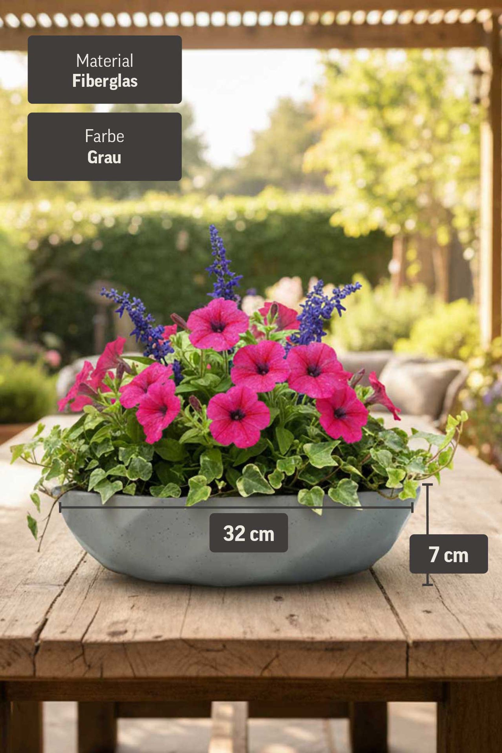 Pflanzschale Dekoschale Fiberglas CAVERO Betongrau