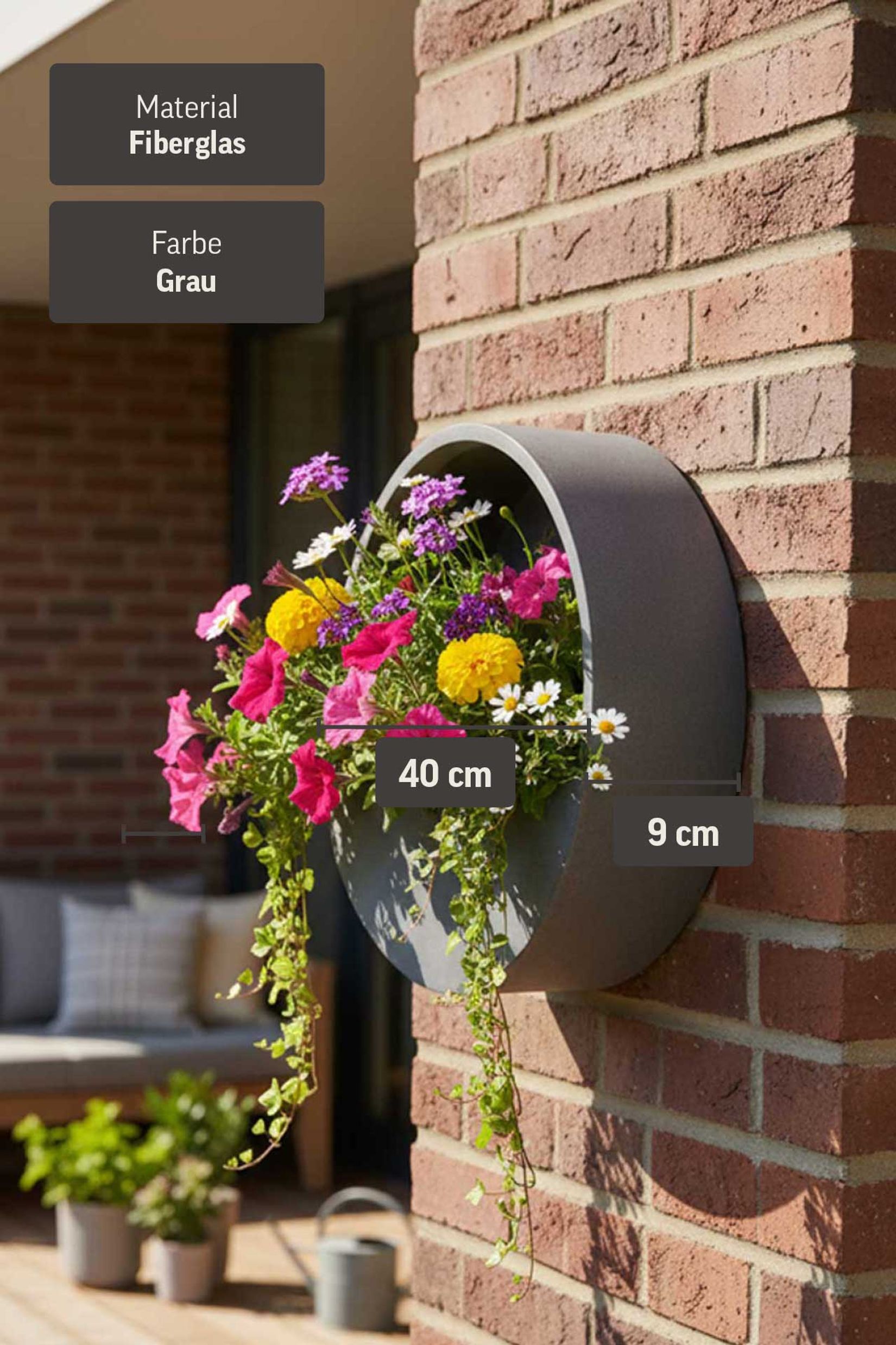 Wandtopf Wandkübel Wandblumentopf MURA Fiberglas Grau