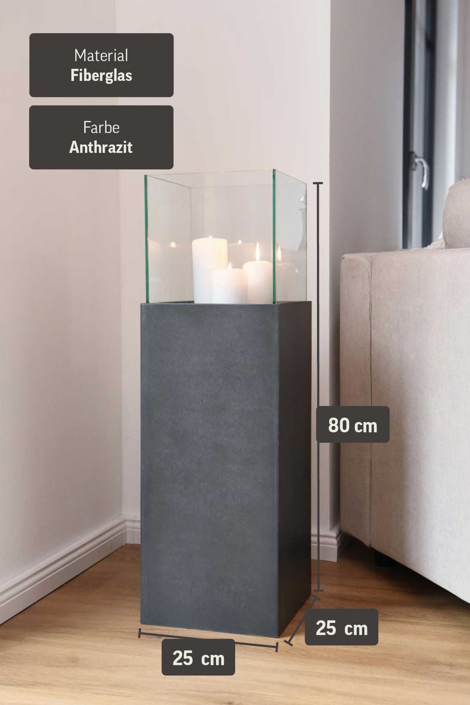 Windlichtsäule Windlicht Kerzenhalter Bodenwindlicht in Beton Optik CANDELA - Anthrazit
